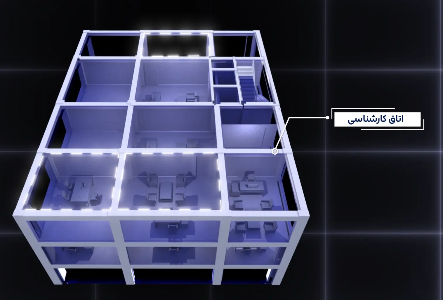 طراحی معماری و مدلسازی سهبعدی پیشرفته: تمامی بخشهای پروژه از جمله اتاق مدیریت، دفاتر کارشناسی، فضاهای اداری و محیط پارکینگ بهطور کامل در نرم افزار Revit مدلسازی شدهاند تا پیش از اجرا، تمامی جزئیات طراحی و کاربری فضاها بهدقت بررسی و اصلاح شوند.